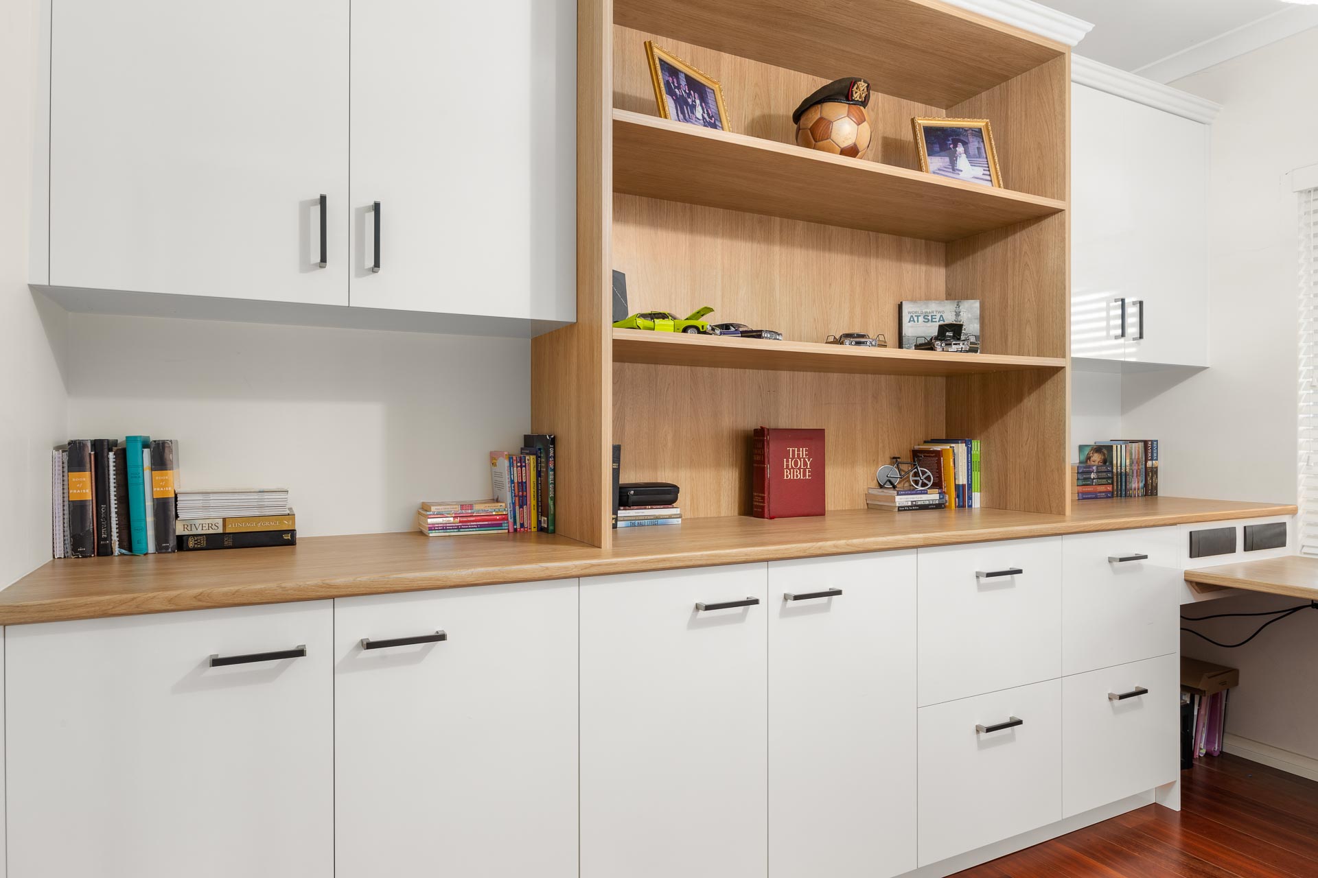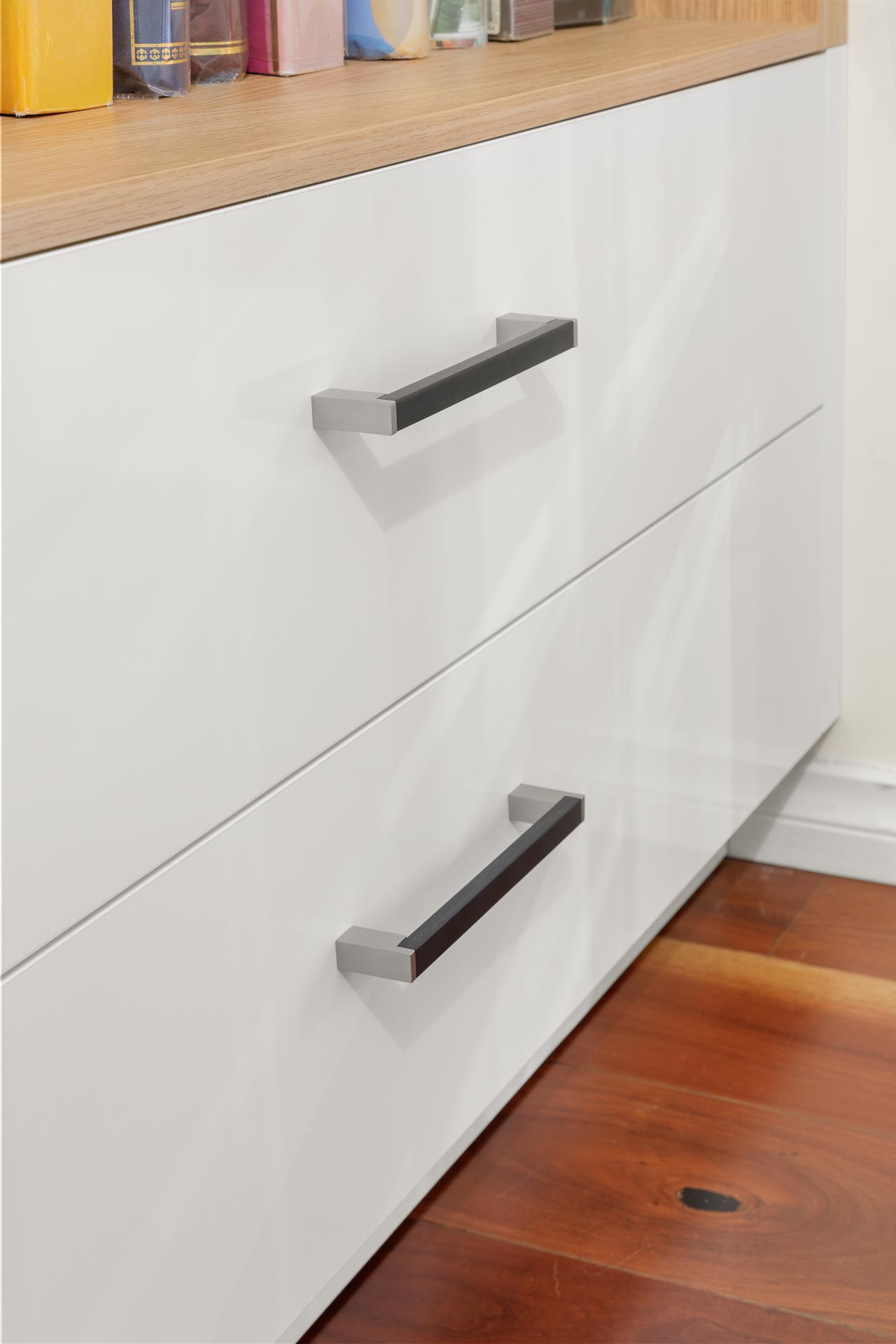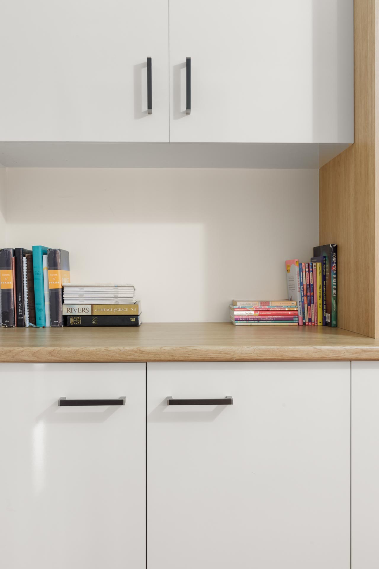 - Dual Finish Design: Combination of 16mm Polytec Natural Oak Ravine laminate and 16mm Formica Warm White gloss