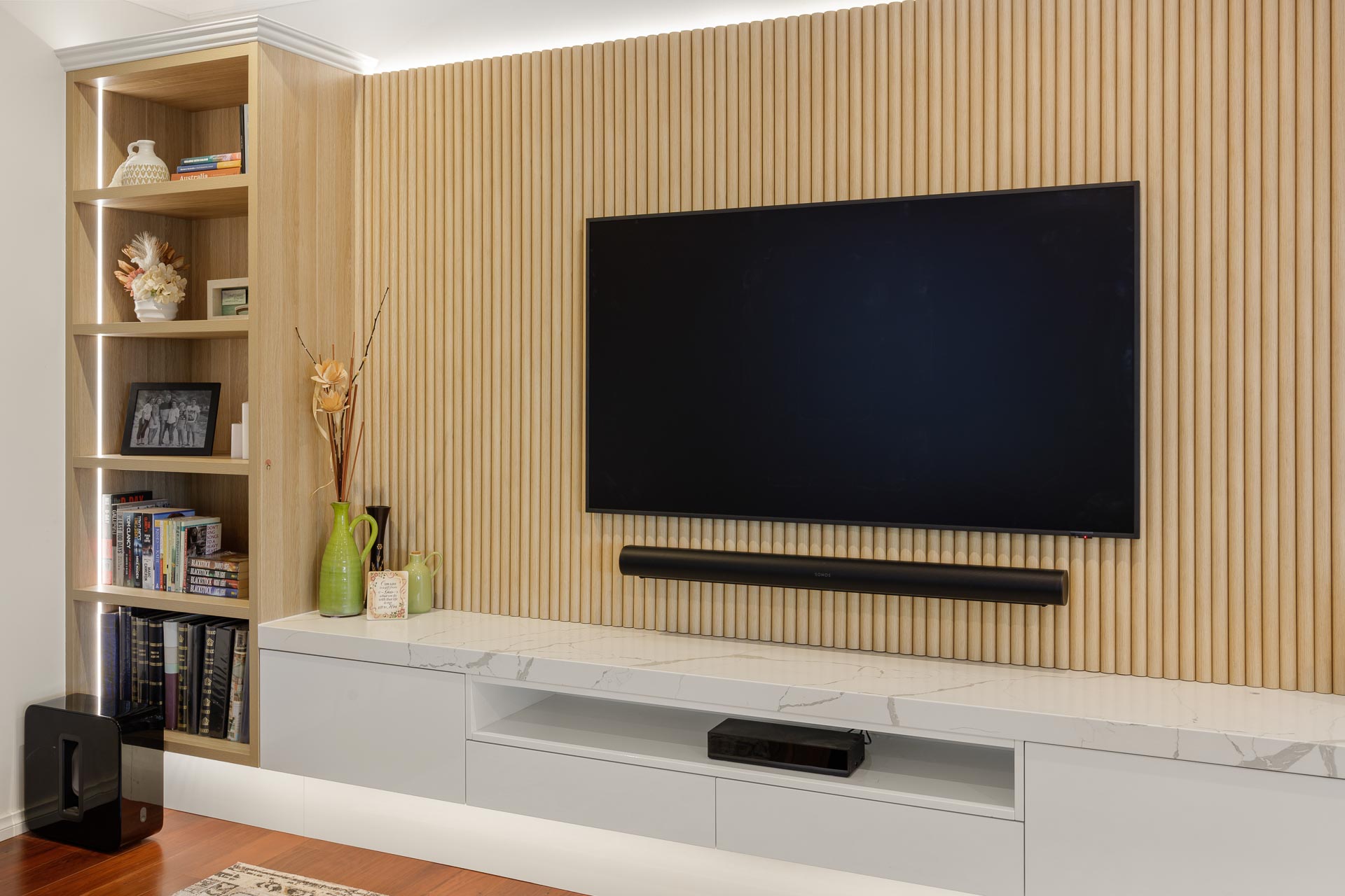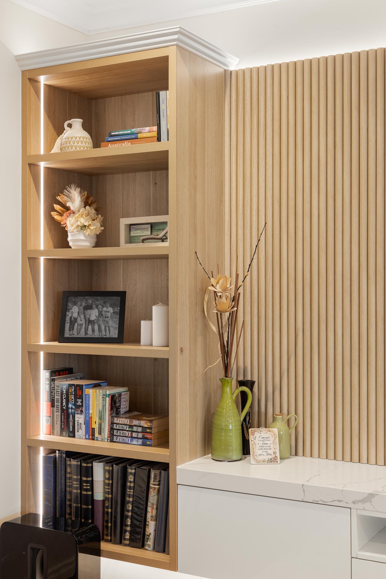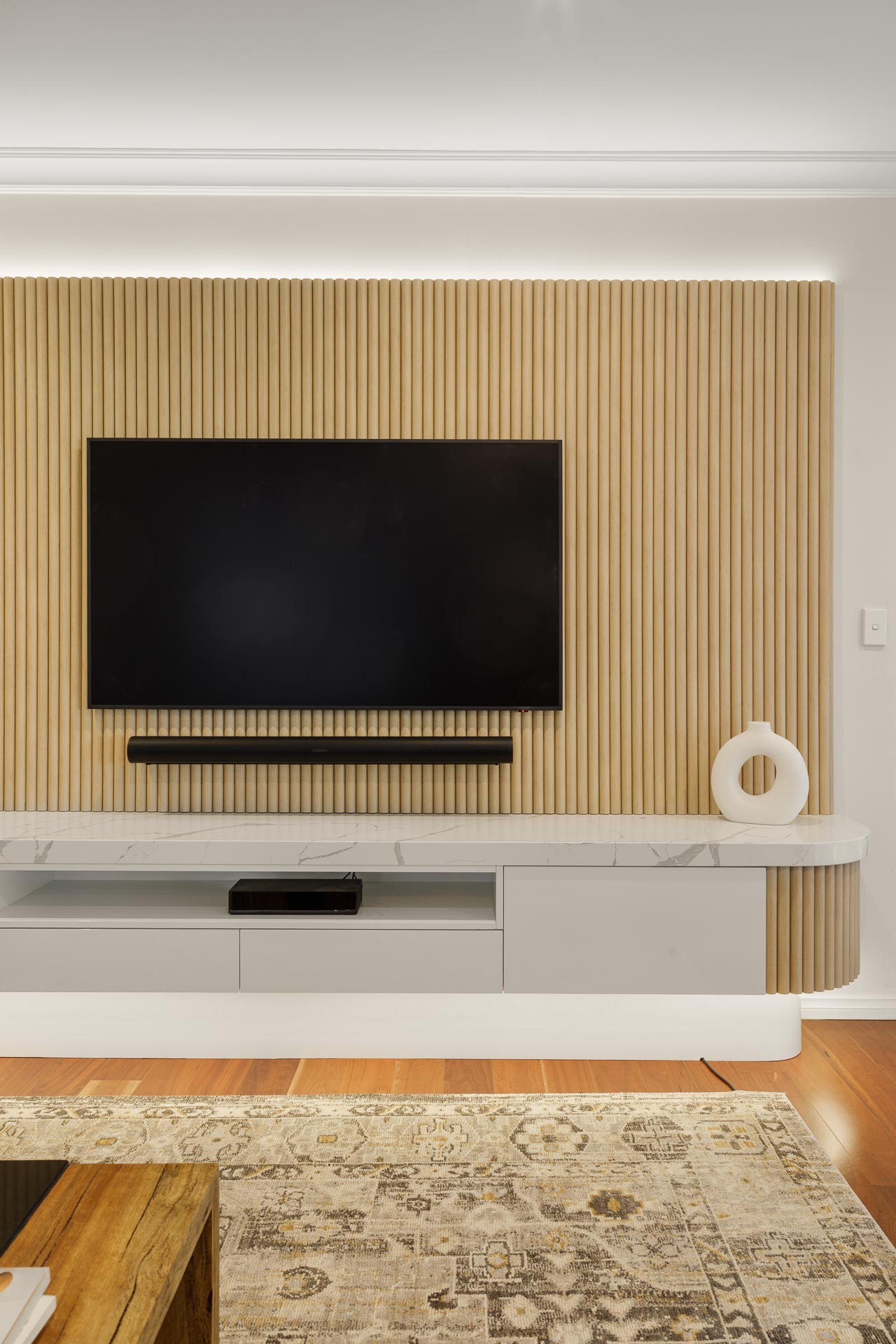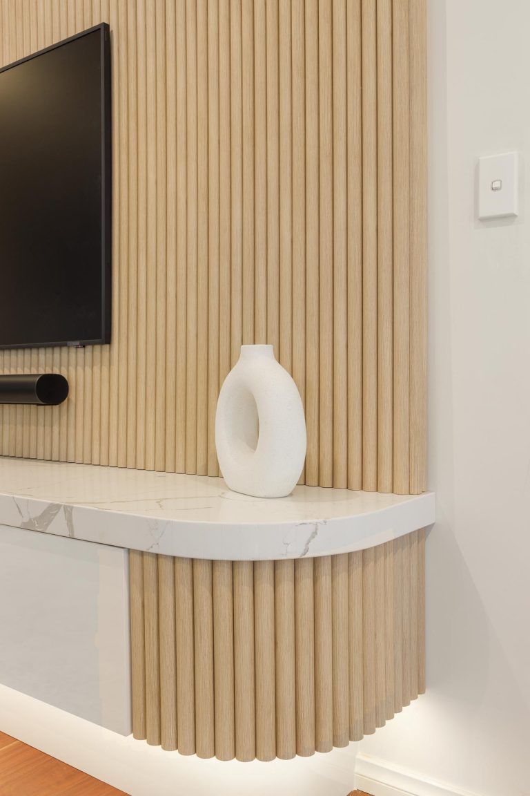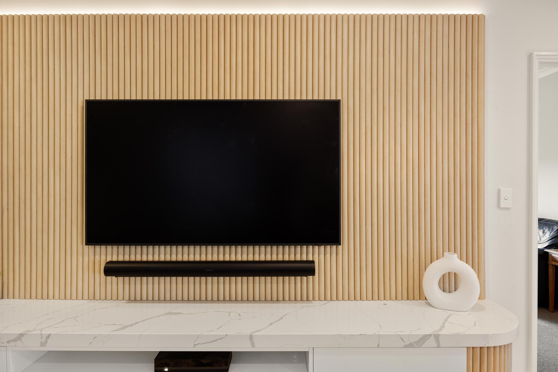 - Custom Features: Steccawood vertical slat detailing (38x17mm Polytec Natural Oak Ravine) for visual interest and texture