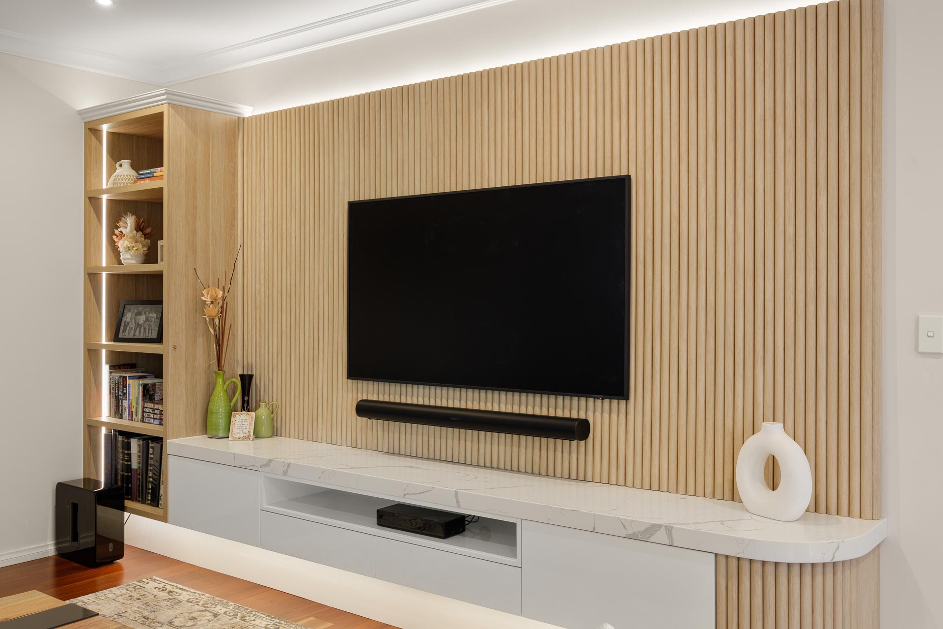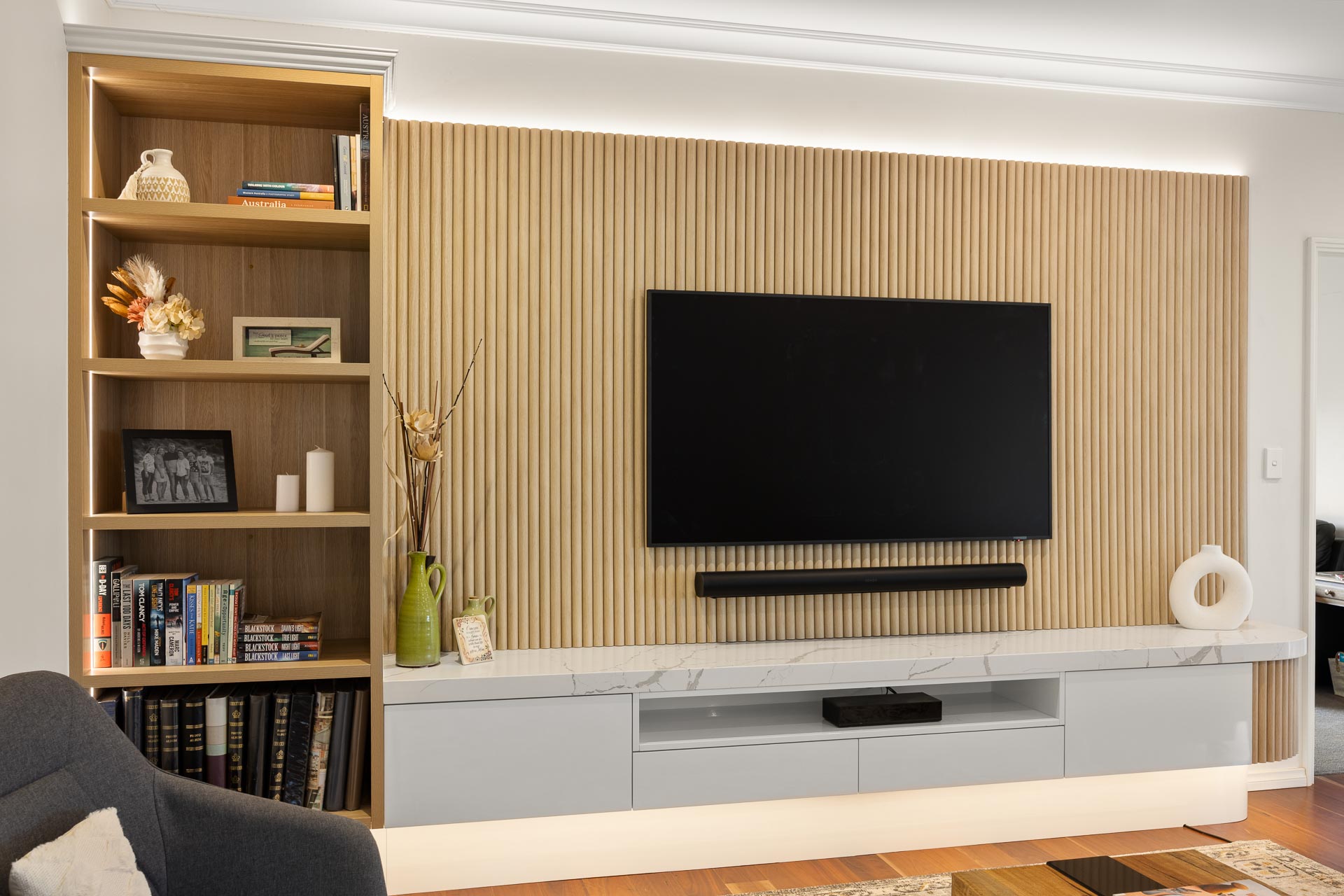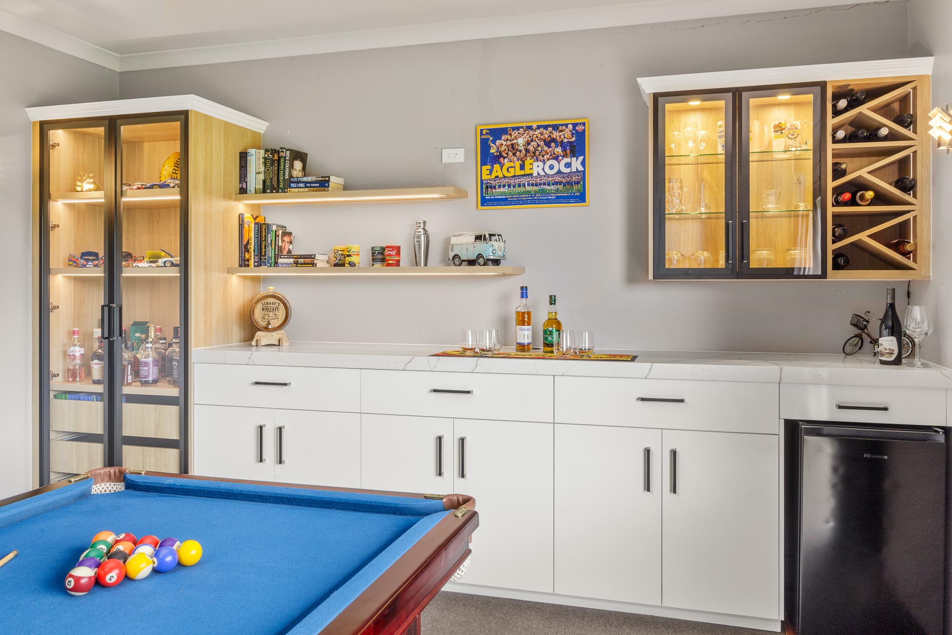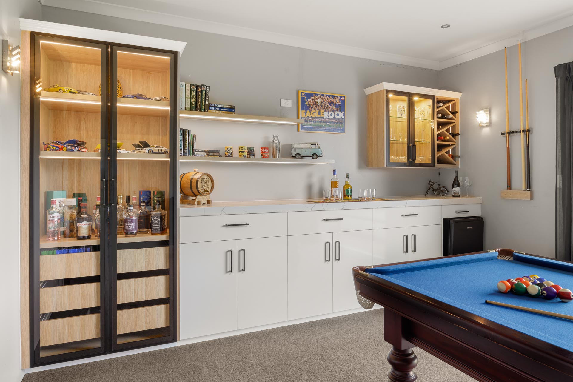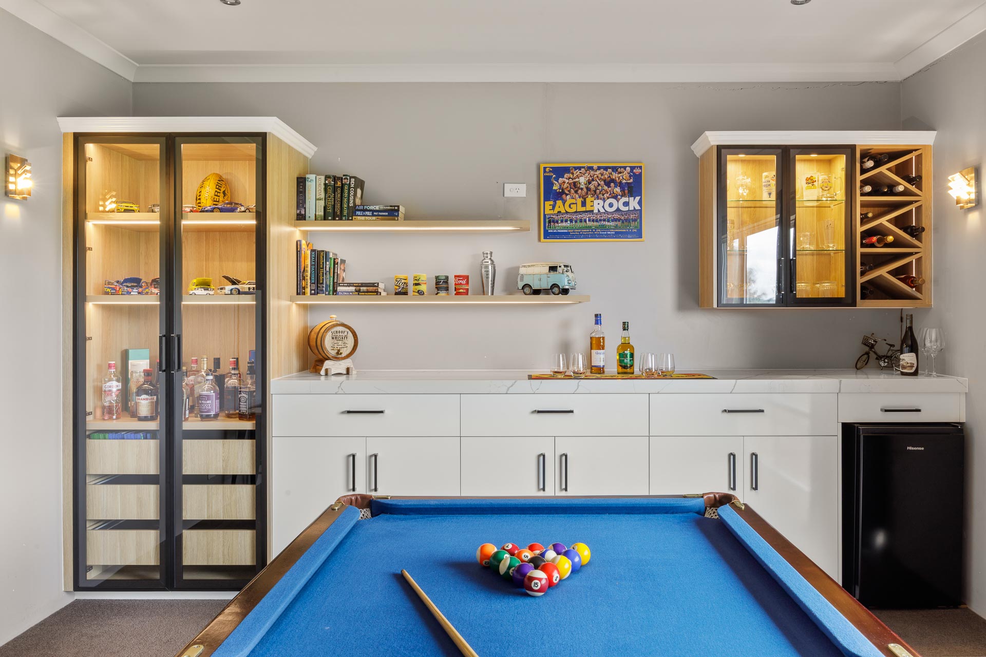 Our clients in Bedfordale approached Precision Cabinet Makers with a vision to transform two key areas of their home: creating a sophisticated entertainment unit for their living space and designing a comprehensive games room that would serve as the perfect entertainment hub for family and friends.