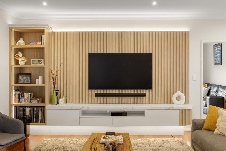 The end result was a beautifully renovated home that perfectly reflected Angela’s style and met her every need. The narrow laundry room was transformed into a highly functional space with ample storage, while the master bedroom wardrobe provided a spacious and organised solution. The bespoke cabinetry in the bathrooms and living areas added a touch of elegance and sophistication, tying the entire home together.