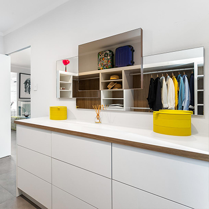 Whether you envision a luxurious walk-in robe with dedicated zones for every accessory or a sleek built-in wardrobe that seamlessly integrates with your bedroom, our designers create storage solutions that perfectly balance form and function.